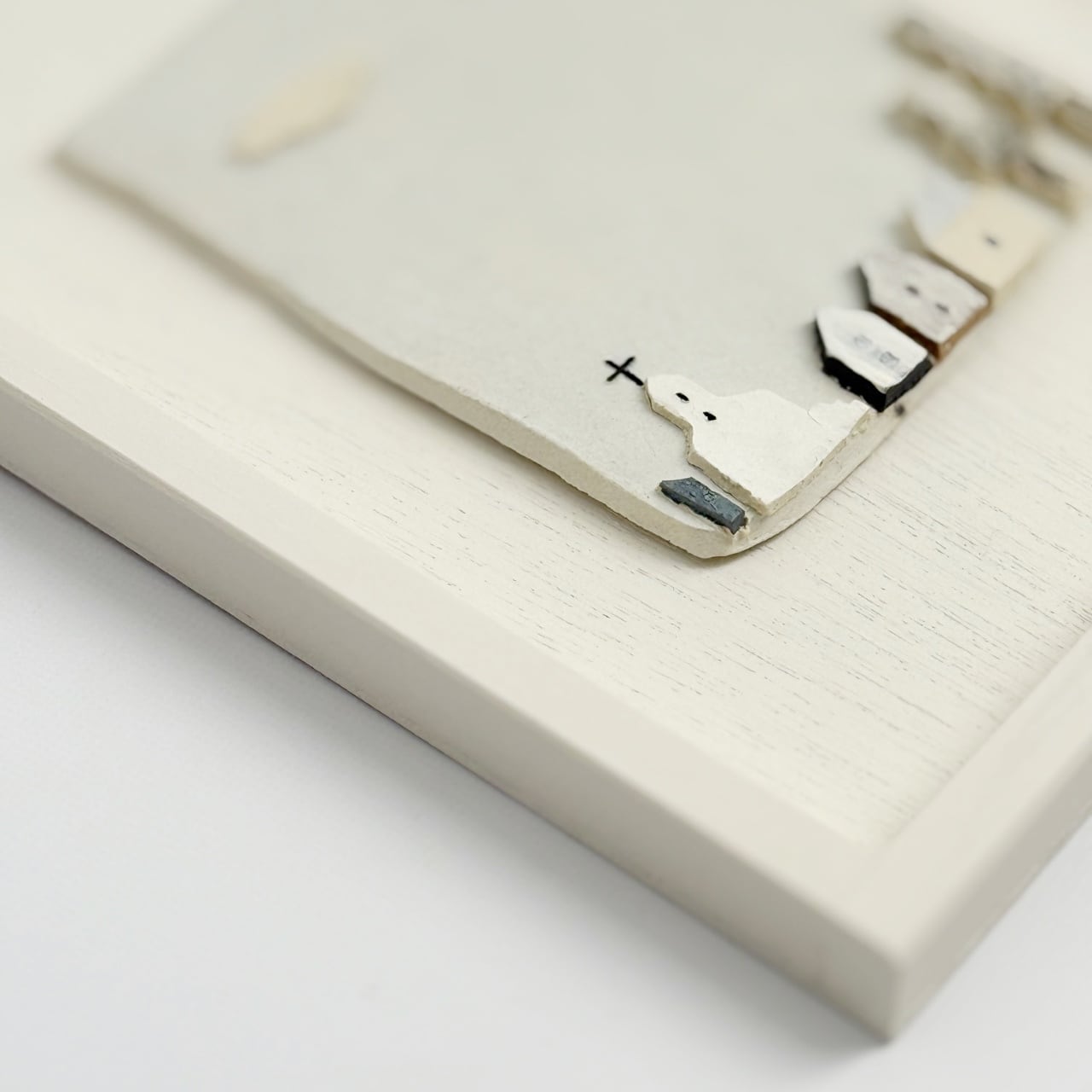 Brighten your space with this serene ceramic wall art from the Ceramic City series. Encased in a handmade wooden frame, this piece captures the quiet memory of a tiny village on a porcelain slab. Each work is a one-of-a-kind creation designed to bring a sense of deep tranquility and nostalgia to your home. It is ideal for wall hanging, shelf decor, or as a unique gift for those who appreciate fine craftsmanship. Dimensions are approximately 22.5cm in height, 17.5cm in width, and 1.7cm in depth.